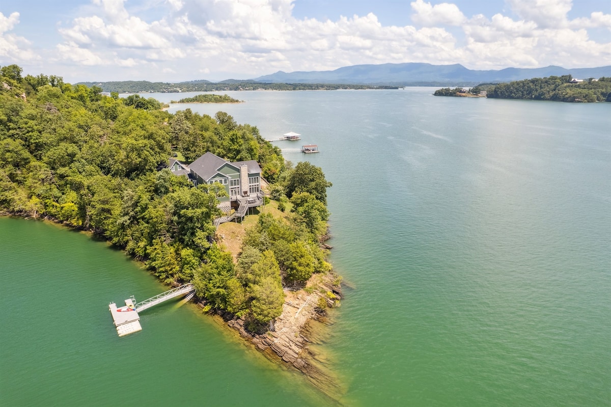 The entire upper level of this luxurious lakefront home is designed for your use and enjoyment. The views of the Smoky Mountains are the backdrop to this oasis. Enjoy a bird’s eye view of lake from the upper deck. Easy access to lake using staircase or paved roadway. Bring all your water toys and dock your boat or swim in the cove using our pontoon as point of access to lake. Gourmet kitchen and large outdoor flat top grill make cooking fun. Many small appliances available for guest use.