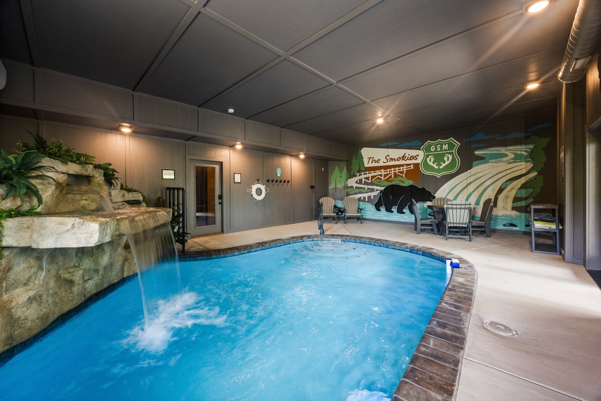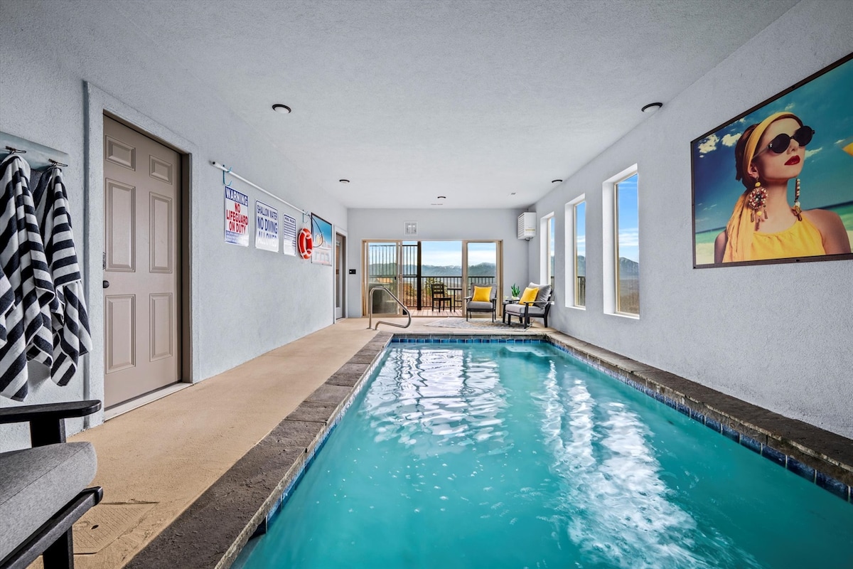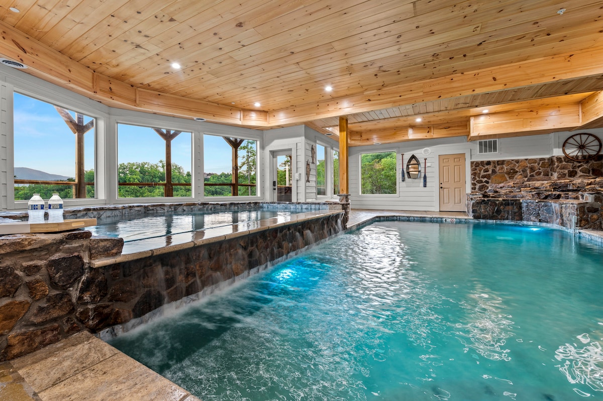 Welcome to Smoke on the Water: your luxury mountain retreat! ⛰️ Whether you're swimming in the private indoor pool 🏊, relaxing in the hot tub under the stars ✨, or enjoying coffee fireside with stunning views 🌄, this cabin is made for memory-making. With a theater, game room, modern kitchen, and space for the whole crew, it’s the perfect launchpad for family connection and adventure. 🌲 15 min→ GSMNP 🏍️ 21 min→ Wildside Adventure Park 🎡 25 min→ The Island 🎢 31 min→ Dollywood