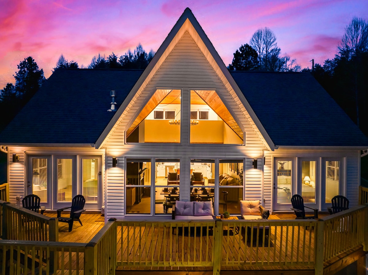 *Newly built mountain cabin that sleeps 12 comfortably. *Top and bottom decks with AMAZING mountain views. *3 Levels High, All Bedrooms have private bathrooms. *Larger Smart TV's throughout house. *Real fireplace - Bring your own firewood and enjoy! *Fully equipped Kitchen including split temperature oven & coffee bar. *HUGE Game Room with Pool Table, Poker Table, Air Hockey, Multi arcade, & Foosball Table. *5 Person Hot-Tub with mountain views. *Gym with Rower, Elliptical & Dumbbells.