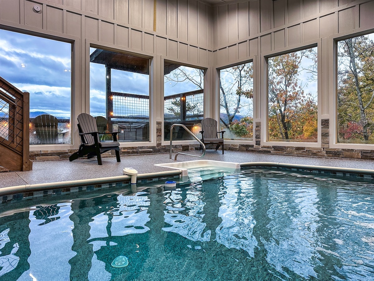 Nestled on a ridge in beautiful Wears Valley TN, Under the Moon is every vacationer's dream. The moment you enter this stunning log cabin, the awesome wall of windows with vistas of the Great Smoky Mountains will immediately bring peace to your soul, and create the perfect back drop for you, your family and friends to re-connect with each other and Mother Nature. With 4 master bedroom suites (and 2 additional bunks for the kiddos) Under the Moon offers all the comforts and space needed.