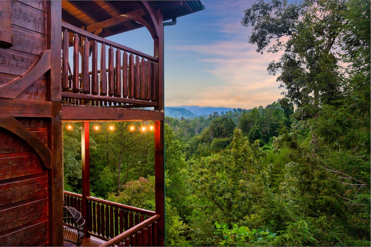 The newly-constructed Bella Vista is one of the nicest luxury cabins in Pigeon Forge with magnificent views of the Smoky Mountains from its three floors, decks, hot tub and fire pit. Although you feel like you are away from it all with the unobstructed view of the mountains, Bella Vista is conveniently located near Dollywood, Pigeon Forge, and Gatlinburg. The cabin has an enclosed theater room, a 10 foot climbing wall, and a huge game room.