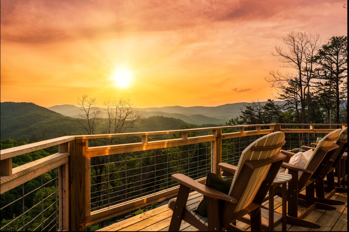 The Diamonds in the Sky - Great Smoky Mountains cabin is a luxurious and peaceful escape with beautiful views. Close to Wears Valley, Pigeon Forge, Gatlinburg, and the Great Smoky Mountains NP. 3 king beds with ensuite bathrooms, 8 twin loft area beds, full kitchen, & indoor gas fireplaces. Hot tub, sauna, theater, pool table, play area, hammock, playground & games. Outdoor fireplace, gas firepit, gas & charcoal BBQs, fast Wi-Fi, ample flat parking. Clean air, star-filled nights, amazing views.