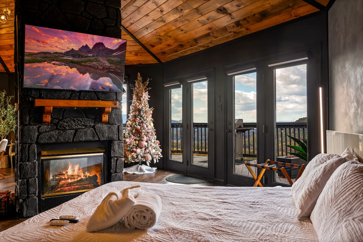 Your Elegant Mountain Adventure Awaits! Avalon Ridge is a breathtaking, private, modern cabin, perched high in the Smoky Mountains, with unparalleled views! The expansive bedroom features a stone fireplace and luxurious soaking tub, the woodland loft is surrounded by old-growth hardwoods, and floor to ceiling windows showcase the view from anywhere in the cabin! Enjoy sunrise from the breakfast perch, or unwind with a luxurious soak in the private hot tub. Reserve this mountaintop retreat today!