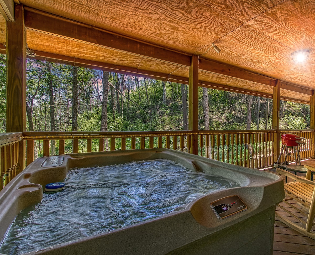 Welcome to Alpine Ridge Chalet - The mountain retreat of your dreams! Perfect for a romantic honeymoon or a vacation with your best friend! 🛣️ 2 minutes from the parkway (No steep hills!) ♨️ Hot Tub, Hammocks 🔥 Gas Grill, Gas Fireplace 🍽️ Fully Stocked Kitchen 🛏️ King Bed ★ Local Attractions ★ * Great Smoky Mountains National Park (17.3 miles) * Dollywood (8.2 miles) * Titanic Museum (5.5 miles) * Tanger Outlets Sevierville (4.8 miles) * Mountain Valley Winery (5.7 miles)