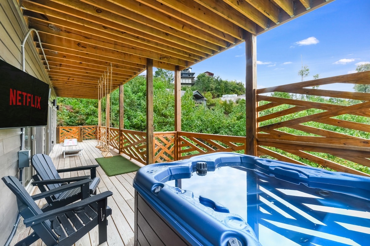 🔹New! Lux and modern 🔹Small private neighborhood 🔹Large Hot Tub 🔹Easy access to Fire pit 🔹Cozy electric fireplace 🔹King beds 🔹Hockey table, arcade and more 🔹Fully stocked spacious kitchen 🔹Charcoal grill * Send me a message for special occasions! 🤍Still deciding? Press the heart button and save to your favorites! Tucked away in a new neighborhood yet close to fun attractions: 🔘5 miles to Dollywood, Pigeon Forge 🔘8 miles to The Island 🔘13 miles to Gatlinburg 🔘14 miles to GSMNP