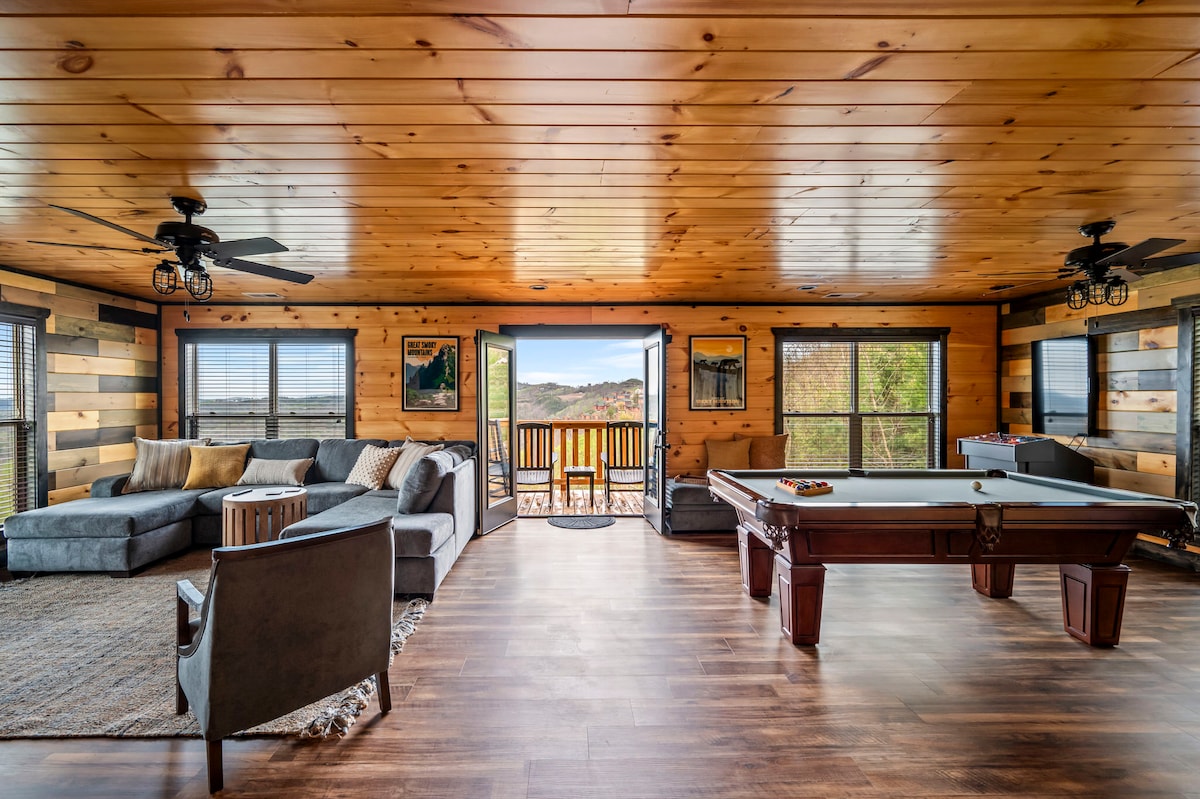 豪华小屋、景观、游戏室、热水浴缸、剧院!