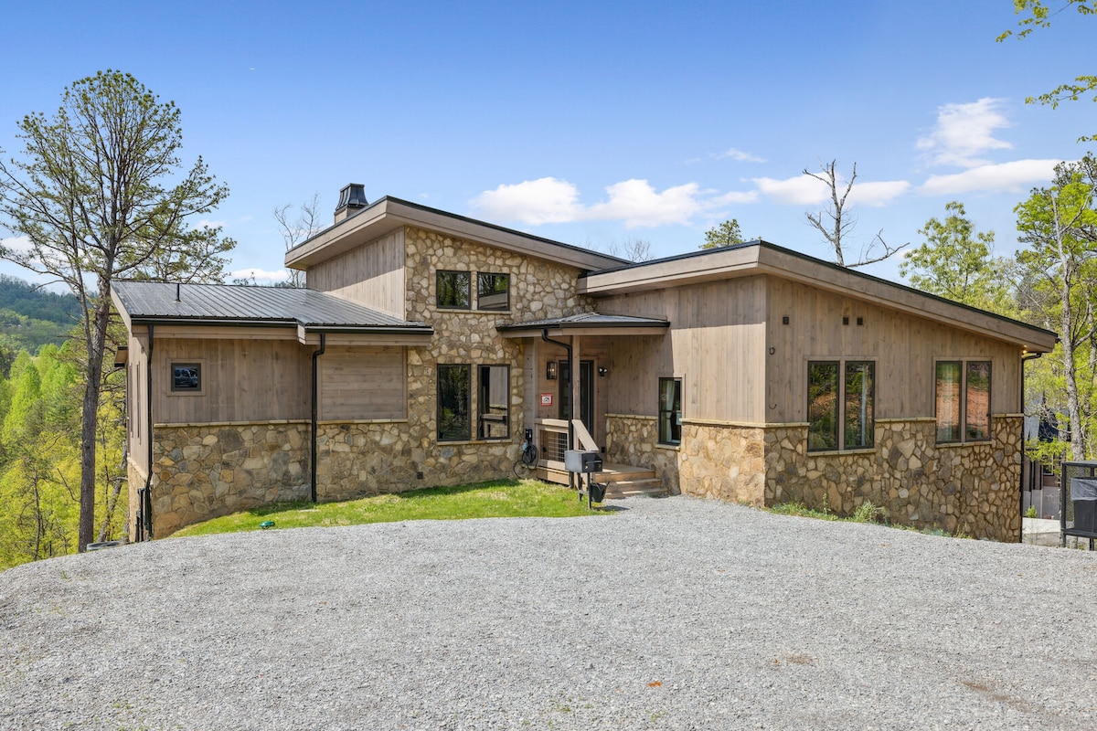 Your Elegant Mountain Adventure Awaits! Avalon Ridge is a breathtaking, private, modern cabin, perched high in the Smoky Mountains, with unparalleled views! The expansive bedroom features a stone fireplace and luxurious soaking tub, the woodland loft is surrounded by old-growth hardwoods, and floor to ceiling windows showcase the view from anywhere in the cabin! Enjoy sunrise from the breakfast perch, or unwind with a luxurious soak in the private hot tub. Reserve this mountaintop retreat today!
