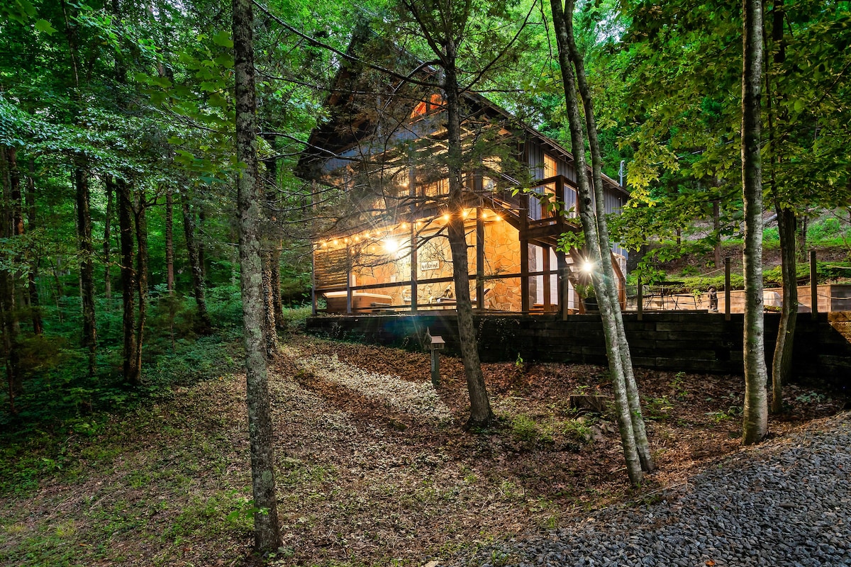 Secluded ,private cabin in a beautiful forested setting-Scandinavian built in King Bed -Conveniently located in between Gatlinburg and Pigeon Forge.Hot Tub under the stars-Full Kitchen-Washer/Dryer-Ac/Heat-Direct TV -Large deck with built in bar and stools- Bathroom with 4 foot shower -WIFI-Electric Fireplace and more. 2 people max. No children permitted of any age. *When you put in a request for a stay it is not automatically accepted. You will need to read and agree to our house rules first.