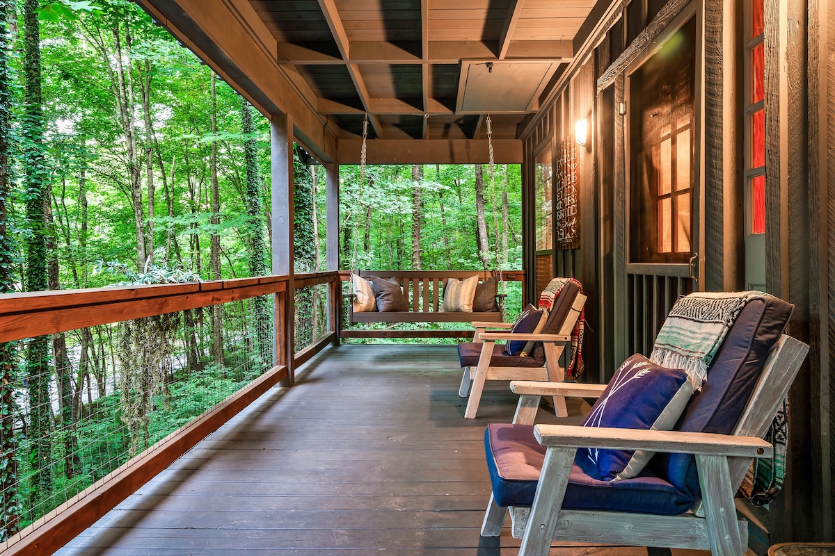 Step out of the hustle and bustle of everyday life by staying in this sweet little rustic treehouse near the Great Smoky Mountains. This semi-off grid cabin features a beautiful view and plenty of opportunity to enjoy nature with a bit of a "glamping feel." This cabin offers free parking, a short, lit hike to the cabin, a fire pit and picnic area, electricity (including a heat/AC), an outhouse, outdoor shower, and beautiful porch for enjoying the view. Water is available via a water cooler.