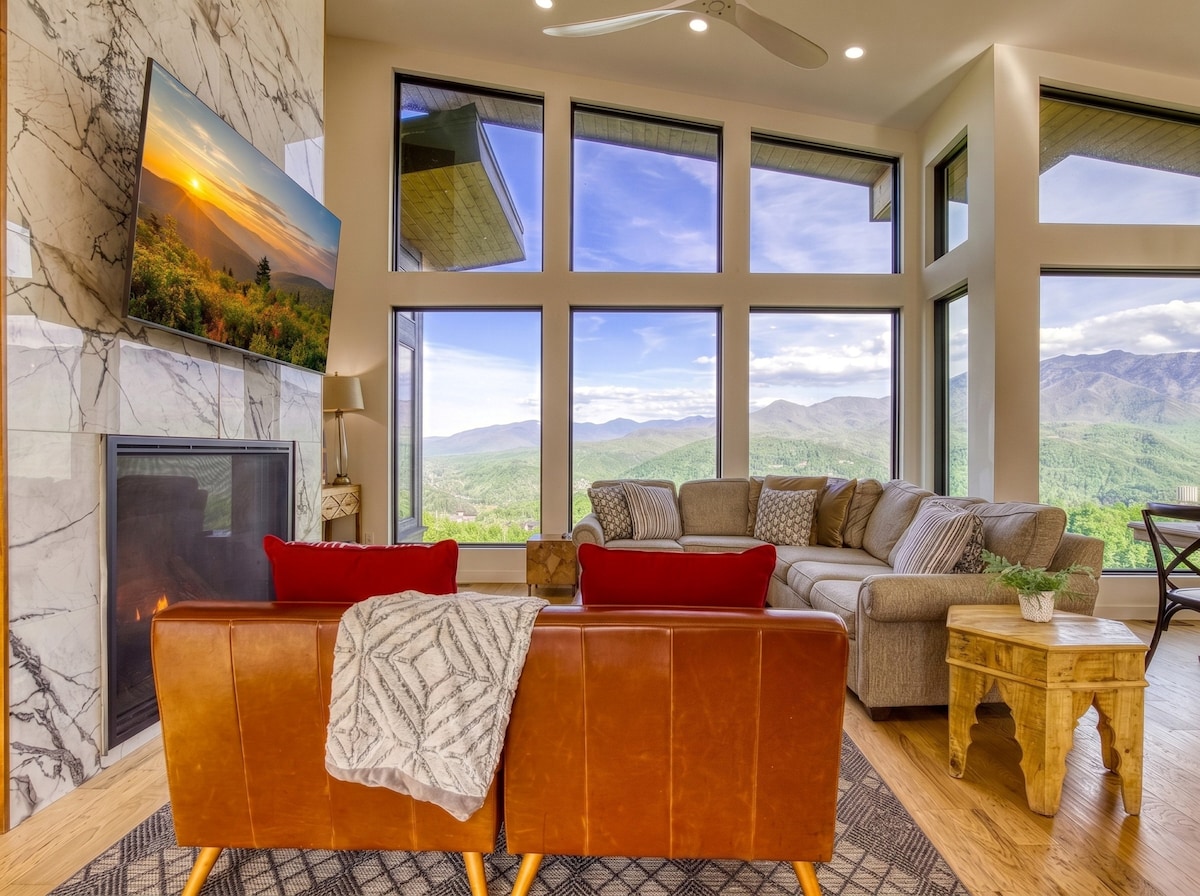 Experience unparalleled luxury at Windows to the Mountains, a modern marvel nestled in Gatlinburg with stunning views of Mt. Leconte. Chalet features a rooftop deck with a modpool, movie theater, and exquisite outdoor amenities. Enjoy a fully-equipped kitchen, cozy living room with a vapor fireplace, and a master suite with a spa-like bathroom. Complete with a coffee bar, game tables, and a sauna, Windows to the Mountains offers an exclusive retreat for discerning guests seeking a lavish escape.