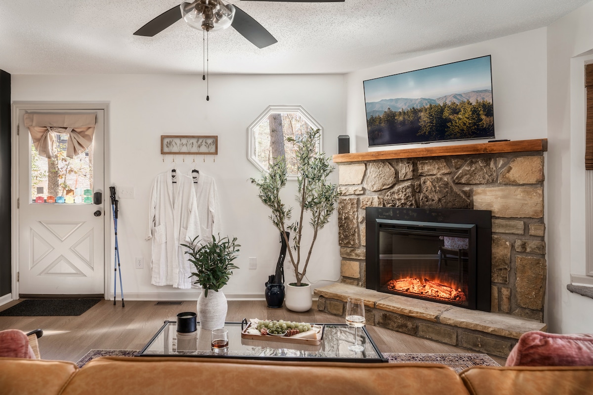 Timberfallrefuge Welcome to the Gatlinburg Love Nest, your perfect honeymoon retreat nestled in the heart of Gatlinburg, TN. This cozy and modern 1-bedroom, 1-bathroom cabin is designed with couples in mind, offering a romantic atmosphere and all the comforts you need for an unforgettable stay. Inside, enjoy the warmth of the electric fireplace, take a relaxing soak in the private hot tub, and start your mornings with a fresh cup of coffee from our fully equipped kitchen.