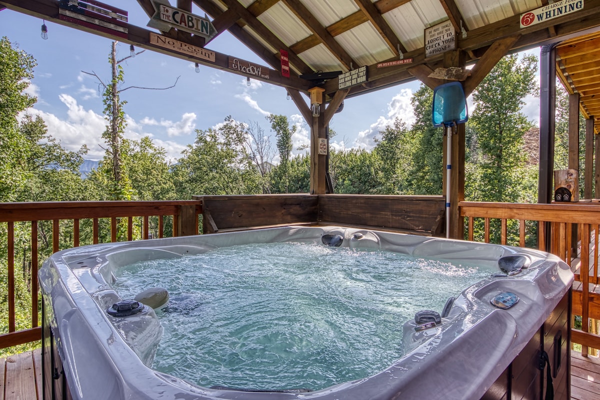豪华小屋、景观、游戏室、热水浴缸、剧院!