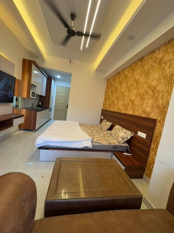 Modern Studio Apartment in Galaxy Blue Sapphire plaza, Greater Noida West Stay in a stylish, fully furnished studio inside Galaxy Blue Sapphire Mall. Perfect for business or leisure, with a cozy bed, WiFi, smart TV, kitchenette, and clean bathroom. Shopping, dining, and entertainment just steps away, plus easy metro and road connectivity. Ideal for solo travelers, couples, or long stays.