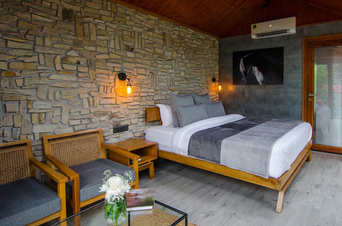 One of three cozy double-occupancy cottages on a rustic half-acre farm, this charming farm cottage overlooks the stables—home to our beautiful mare, Jade. Enjoy a serene lawn- perfect for relaxing amidst nature. Just 15 minutes away by road, our larger barn offers horseback riding, therapeutic walks with horses, stable visits & access to an infinity pool overlooking horses. Enjoy bonfires in winter, dinner by the stables & visits from peacocks—making the barn a truly unique experience.
