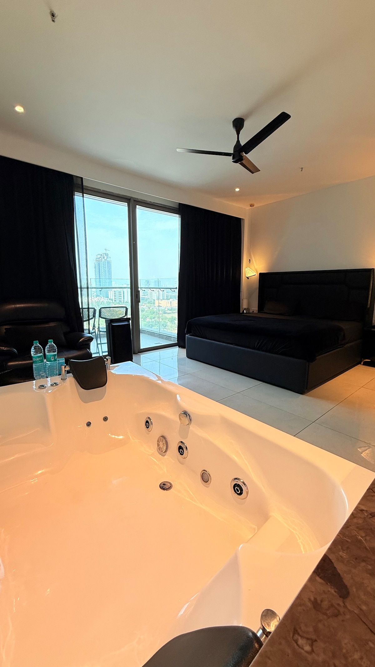 Welcome to our luxurious urban Studio, a sanctuary of style and sophistication in the vibrant heart of the Gurgaon. A standout feature of our loft is specialty Black color scheme, which adds a touch of elegance and drama to space, making your stay comfortable & stunning. As you step into our elegantly furnished Studio, you’ll be greeted by sight of our plush black recliners. These two luxurious recliners are the centerpiece, offering a perfect blend of contemporary design & exceptional comfort.