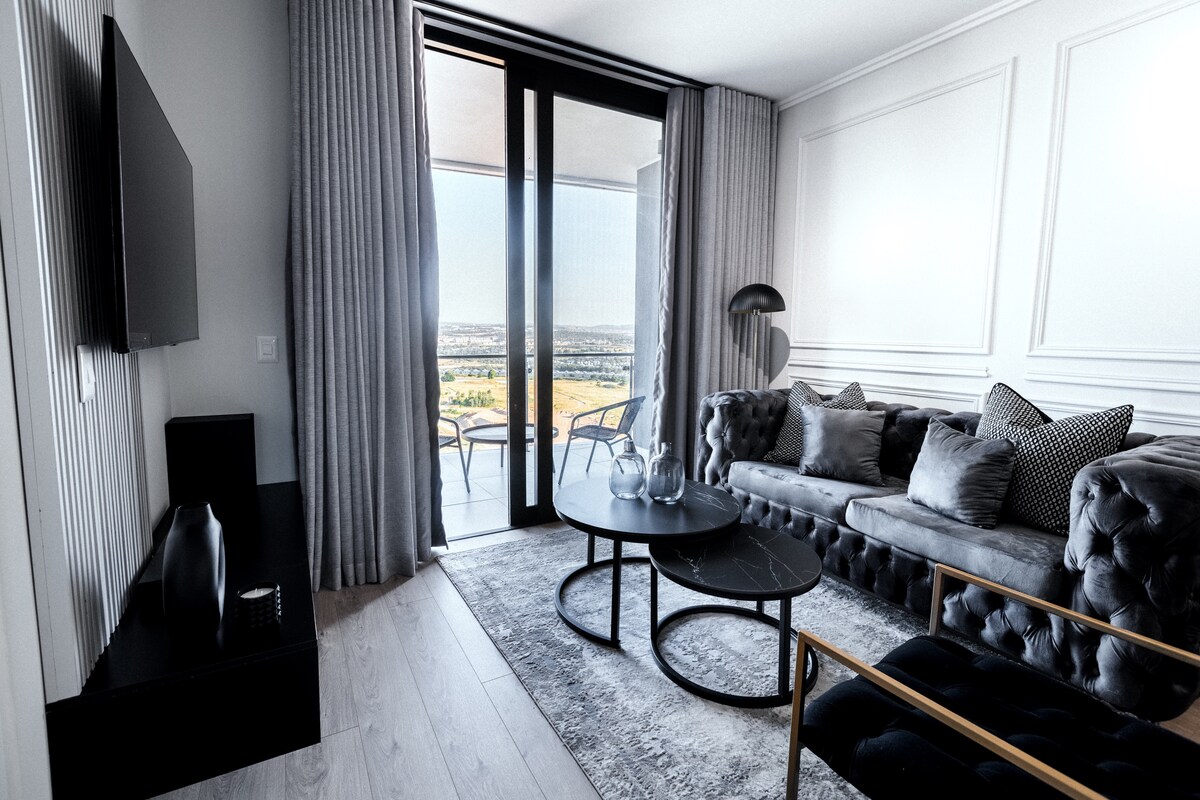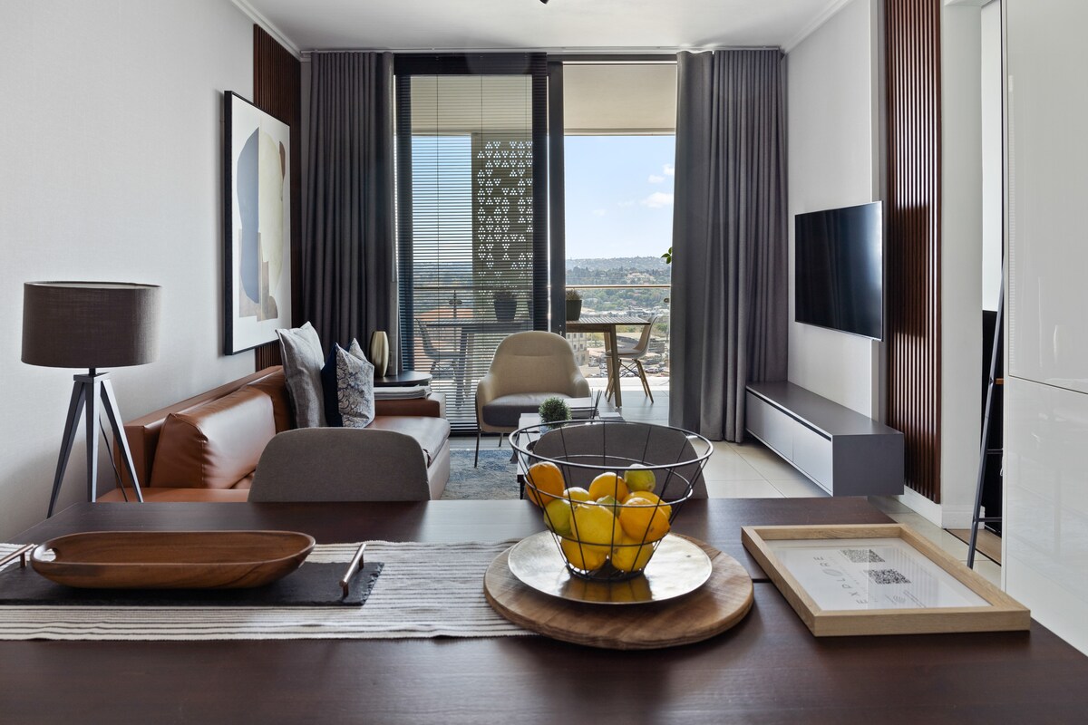Enjoy this comfortable cozy space on an L-couch equipped with a smart TV, uncapped WIFI, an indoor fireplace and balcony in a luxurious secured upmarket place at The Reid Lifestyle Estate in Sandton. This setting offers a comfy queen sized bed, workstation, bathroom and a full fitted kitchen with modern appliances. Amenities: - Lifestyle centre where you can access the restaurant, spa, pool & gym. - Close to Sandton City, Mall of Africa, OR Tambo Airport and Gautrain station. - 1 parking bay