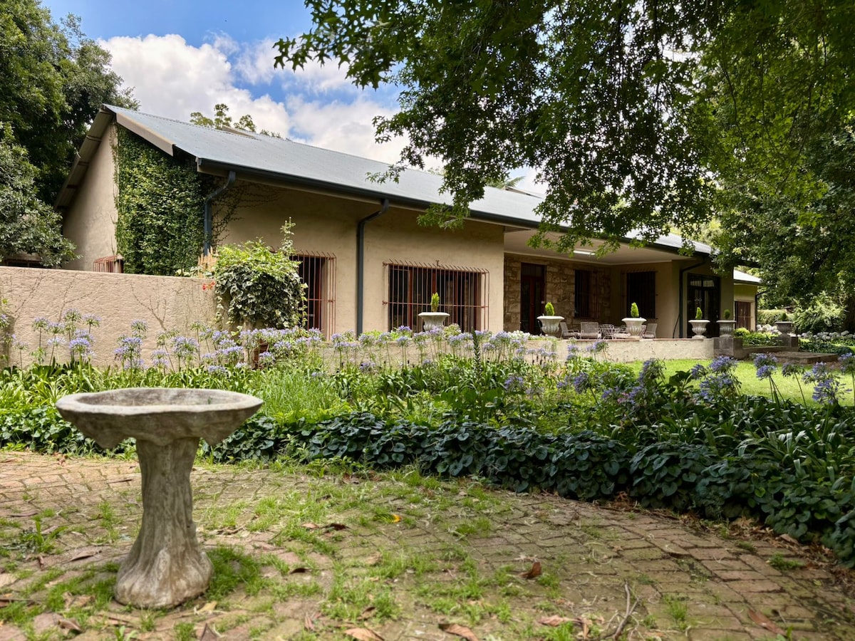 Forget your worries in this spacious and serene cottage located on 1 hectare small holding bordering private reserve with hiking & mountain biking trails. The tranquil setting creates a feeling of being on a farm despite being on the outskirts of the city. Expansive garden with pool, braai area and stoep to relax & de-stress. 10 mins to N1 & N4 highways. 5-10 mins to schools, hospitals, churches, gym and restaurants. The new Linton's corner shopping center is less than 5km away.