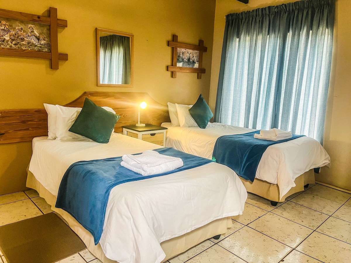 Nature & Luxury - Kruger Ranch is 1hr drive from Johannesburg. Tranquil bush area, mountain views & close to famous attractions. Free private parking. For families, groups, solo travellers & couples. Fantastic outdoor-pool, spot antelopes right from your room, watch the unique African sunset whilst having a sundowner & relaxing on the patio. Private guided game drives on the ranch. You book a room inside our private lodge. In total the lodge provides 10 rooms & can accommodate 28 People.