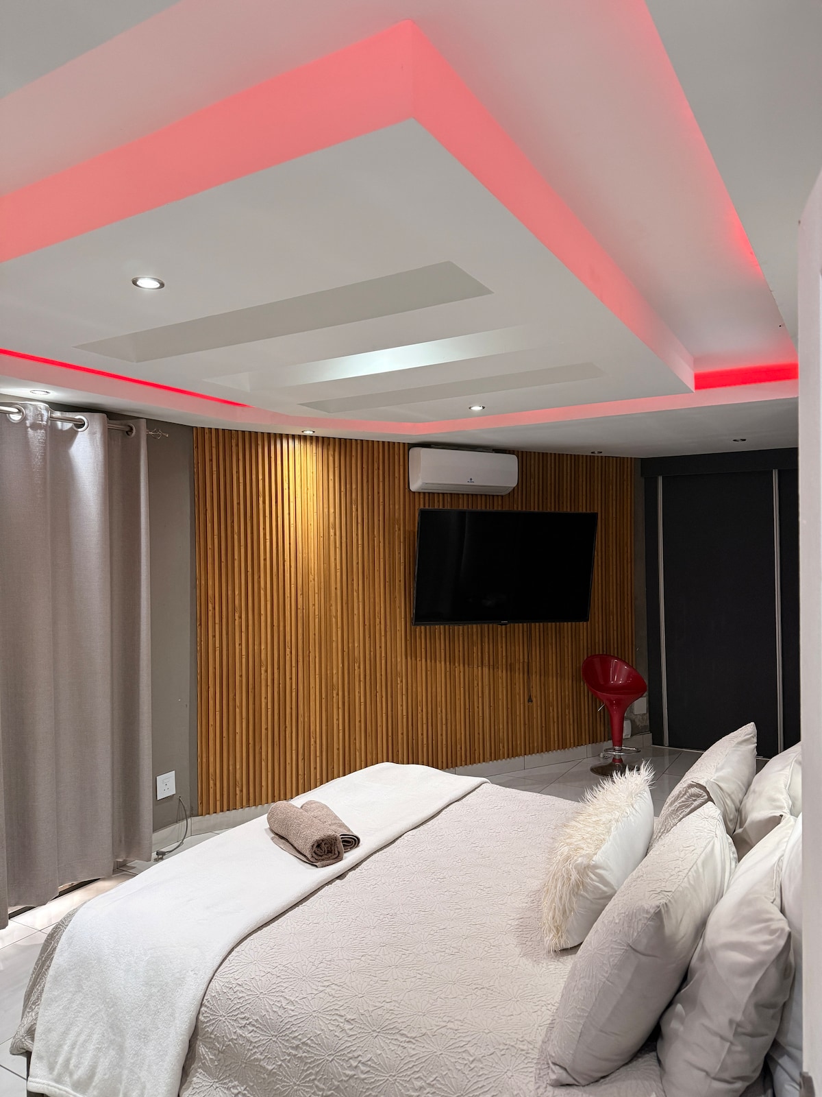 A luxurious home away from home in a magnificent setting with views over Johannesburg and the Magaliesberg mountains in the distance. My home is absolutely secure and your peace of mind is assured. You'll have continuous wifi and Netflix. A breakfast of fresh fruit, yoghurt, muffin and tea/ coffee is offered on the first morning as a welcome. There are 4 further exclusive apartments on the property which can be viewed under Acacia Lodge Luxury Suite 2 and Acacia Lodge Luxury Suite 3, 4 and 5