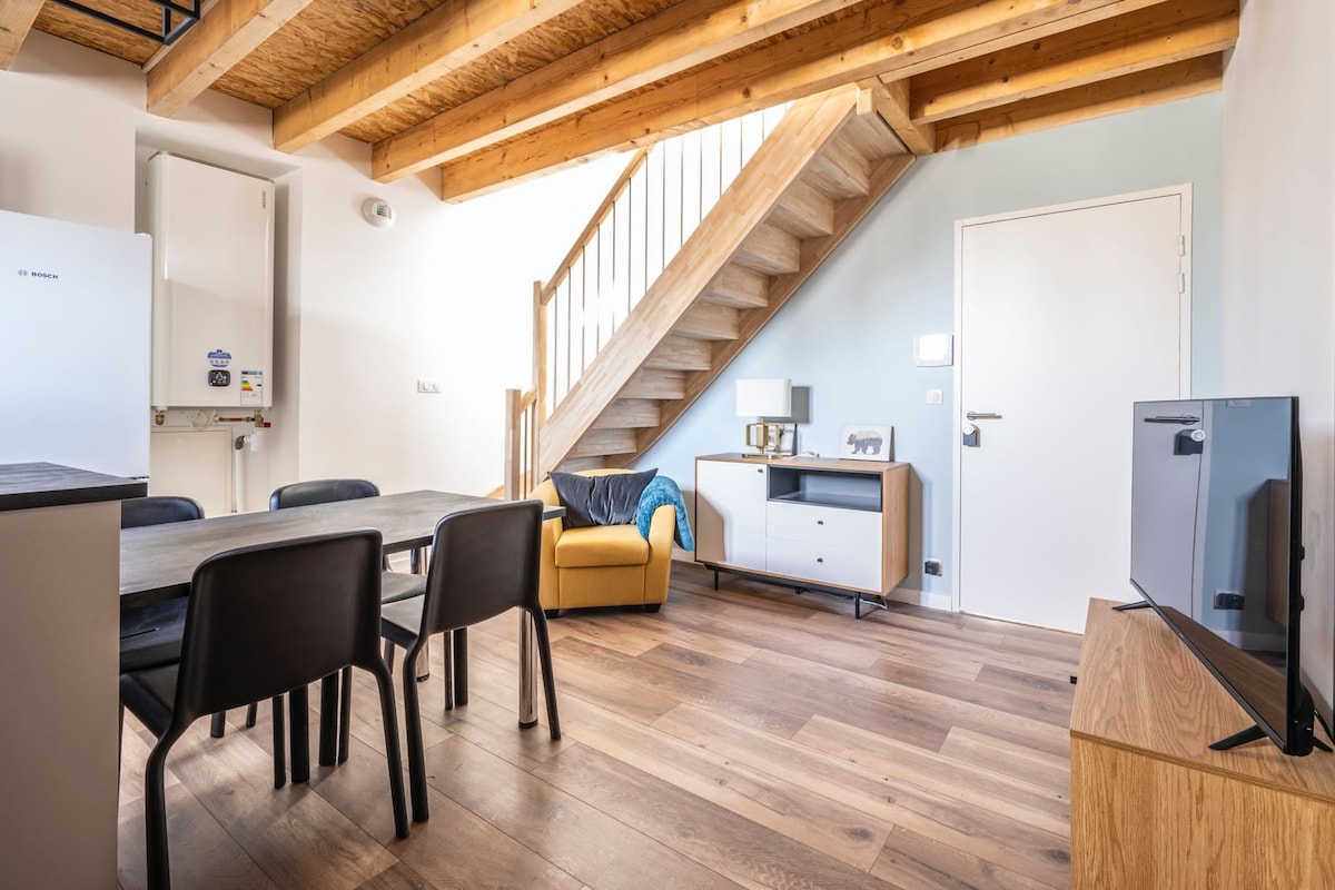 Welcome to this bright 44 m² duplex with a spacious 32 m² terrace, in a quiet residence facing the Château park. Enjoy 1 Gb fiber WiFi, Bosch kitchen, premium bedding, AC, and secure garage with 11 kW EV charger. Ideal for two guests, whether on vacation or business trip. Just 600 m from Pau’s historic center, close to shops, restaurants, and the old town. A relaxing base in the heart of the city.
