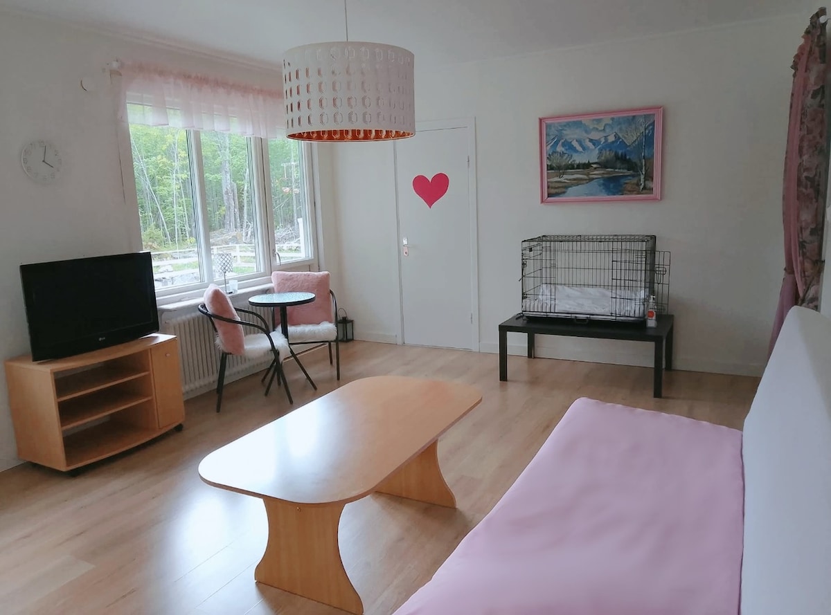 10 min walking distance from the sea. 1 café, 1 restaurant open during the summer and weekends. 2-3 minute walk to bus stop. 10 minutes by car to golfcourse (with restaurant). Cyclepath all the way in to Gävle city. Towels and cleaning is included in price. Parking in the yard. Pets are welcome but not in the beds. Beds are ready when you arrive. Host lives in house next to cabin. Welcome !
