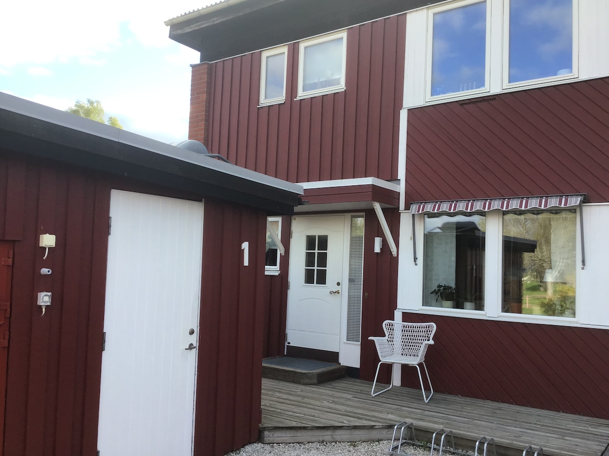 Enkelt radhus med 3 sovrum. Dubbelsäng i två av rummen och enkelsäng i ett av rummen. Totalt 5 (6) sängplatser. Vardagsrummet har utgång till uteplats och gräsyta. Baksidan vetter mot en liten skog. Framsidan har en liten uteplats samt en gemensam lekplats med gungor, sandlåda mm Två badrum, ett på övervåningen och ett på markplan. Boendet har cykelavstånd till centrum, samt närhet till badsjöar och vandringsleder.