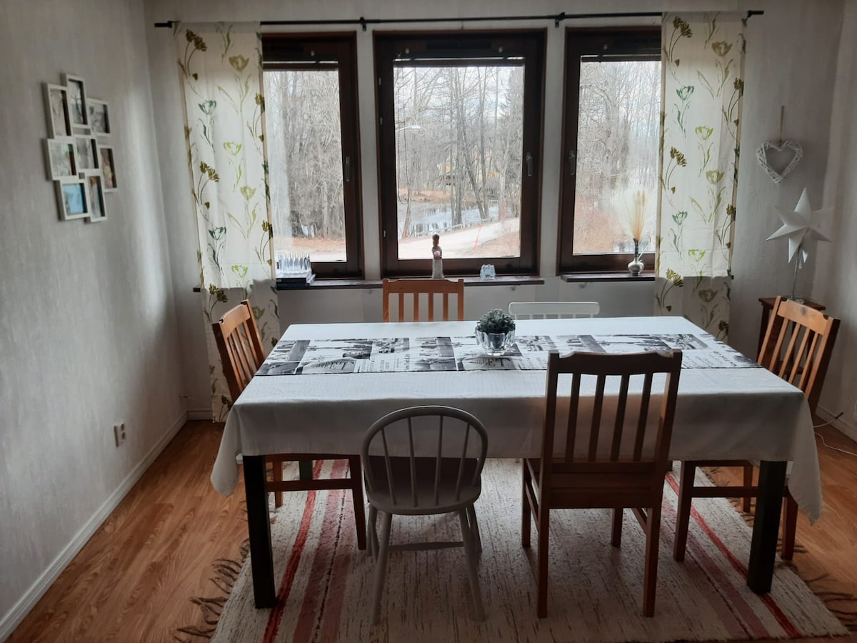 Just by the water in the small community of Ornäs (10 minutes by car to Falun and Borlänge) is our completely newly built accommodation, Sjövillan. Sjövillan is a total of about 200 sqm of which two apartments (about 100 sq.m.). Both apartments are on two levels. Both with private entrance and balcony on both front and back of the house. A spacious, bright and cozy accommodation with 3 bedrooms, 2 bathrooms, nice kitchen with all amenities, a large terrace facing the lake.