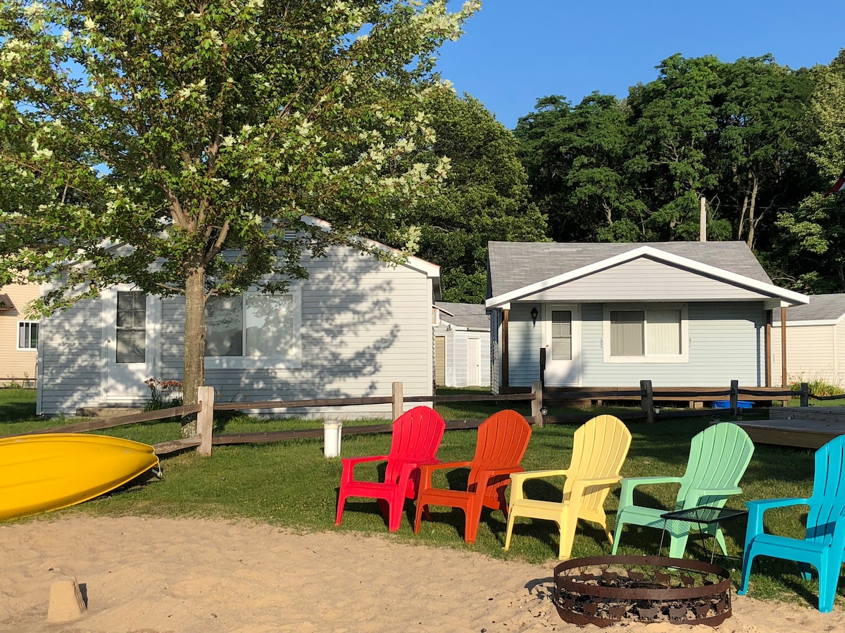Welcome to our private Tiny Villa! It is completely stocked with dishes, cookware, gas grill, beach chairs, towels, wifi, fire pit etc… Tucked away overlooking the pond, it’s a perfect place to relax after a day of activity. An easy 20 minutes to Traverse City where you can go to the beach, shop or enjoy many excellent restaurants. Firewood available on site & have the following to RENT: Pontoon, kayaks, & paddle boards ( Contact H2O Sports Rentals to book these items or message us)