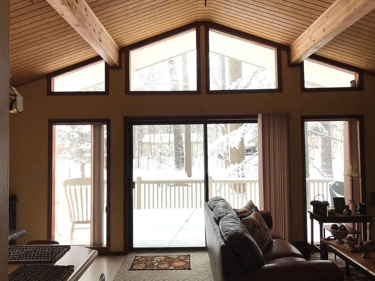 A great location, northside. A must see. Across the street from Mt McSauba nature preserve trails for hiking, 5 minute walk to Lake MI dunes with a beautiful beach & a 2 minute walk to watch the sunset. 2 miles from downtown. Wheelway Bike path & disc golf. Very cozy atmosphere with a fully equipped kitchen, bring your essential oils and relax in the jacuzzi tub, very comfortable beds, fold down couch and cot if needed , washer/dryer, relax by the wood fireplace Sept-May, Fire pit May-Sept