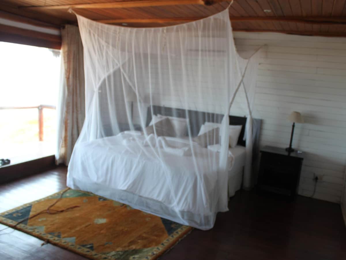 The Villa has 3,000 square meters of living space and equal area of protected space. It is an environmentally friendly house that uses solar energy (90% of total energy consumption), set in a rural african environment, located 20 km from Chidenguele on a hill by the lake Nhambavale, surrounded by a garden with trees and a small vegetable organic garden. The surrounding beauty provided by Nhambavale Lake and native forest provides its guests with magical moments with an unforgettable sunset.