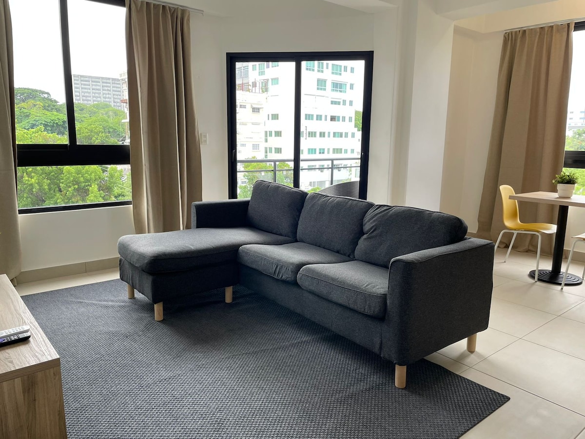 BRAND NEW- 1 Bedroom apartment: - 2 smart TV’s -2 new AC units -New washer & dryer - Safe - High speed internet - Smart front lock - LED lights - electric wine opener -blow dryer - Steamer - 1 parking space (under roof) Kitchen fully equipped (incl an air fryer) Rooftop Terrace: - PICUZZI + GYM with an amazing view. Location: - Downtown of SD. Safe neighborhood, and minutes from El malecón & Zona Colonial. Ask about the romantic set up with champagne or wine bottles and chocolate