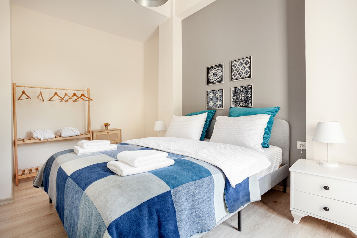 Our apartment offers comfortable accommodation for up to four guests with two bedrooms. In the spacious living room, you can enjoy a movie night, play Xbox, or listen to music with the Marshall sound system. The open kitchen, bright bathroom, and practical amenities make it suitable for both short and long stays. The most enjoyable space is the terrace, decorated with seating areas—perfect for sipping your coffee or having pleasant evening conversations accompanied by music.Located on -1 floor