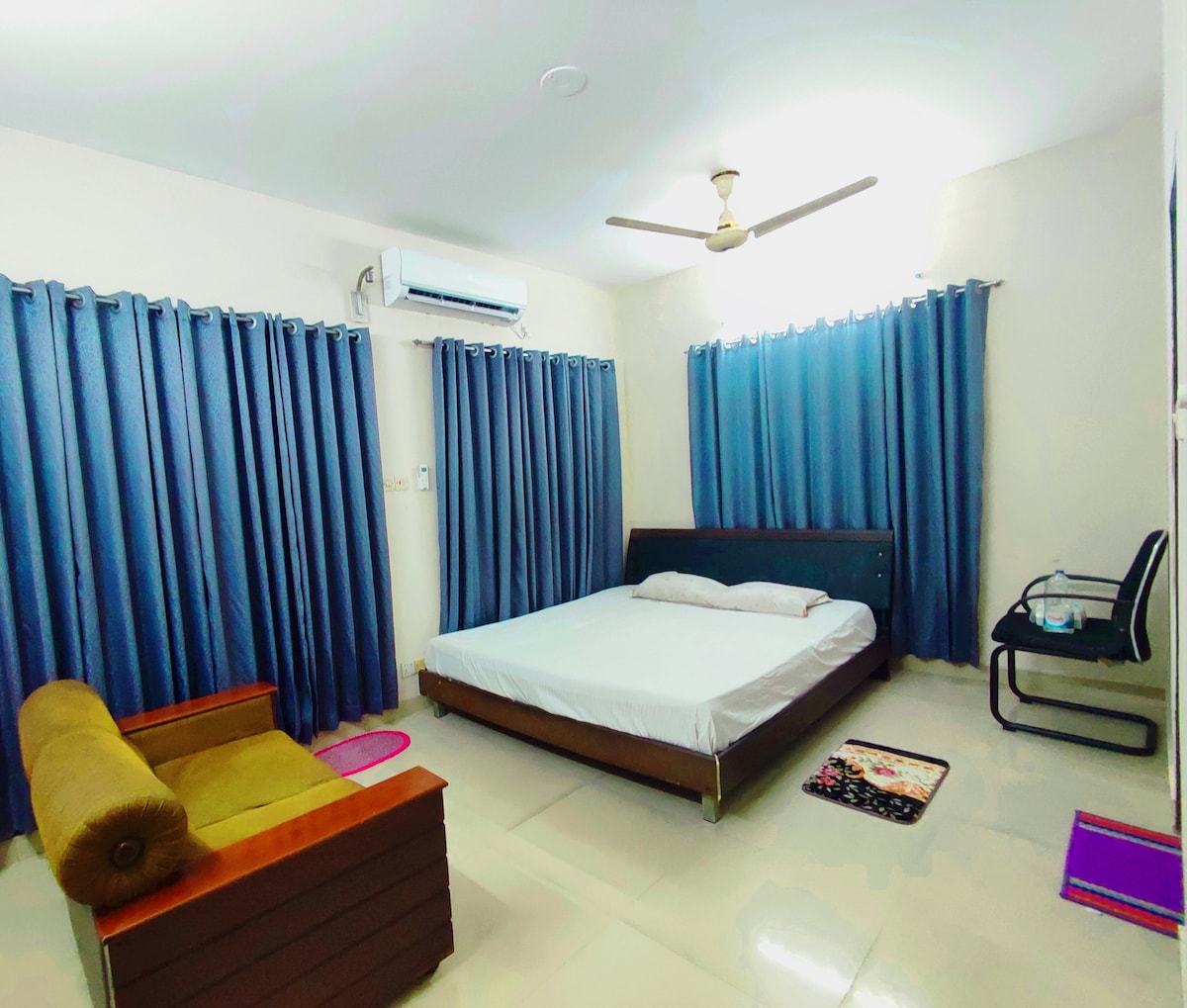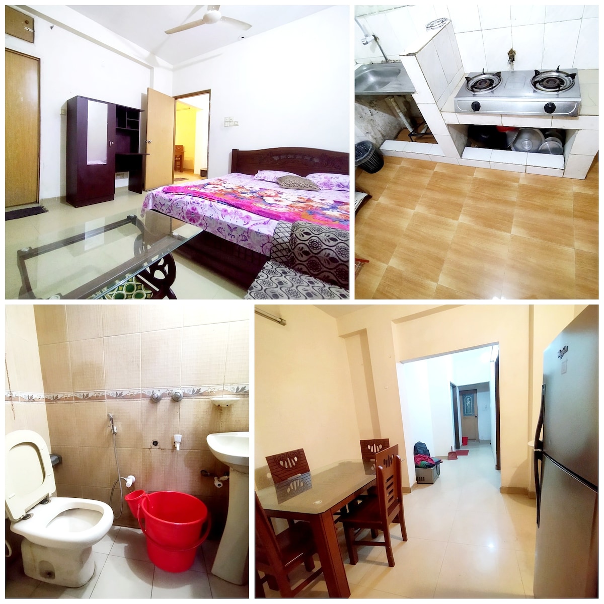 The Apartment is in Uttara. The apartment is air-conditioned, peaceful, secured, modern, with full cooking amenities, attached bathrooms, WiFi, Work Desk, etc. International Airport is 10 minutes drive.