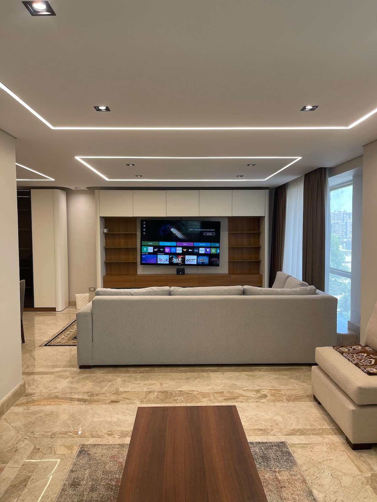 All you need in one place! Studio flat with Sleek interiors & outstanding lighting design. Set your ambiance and start chilling. High speed Wi-Fi with smart big screen & comfy sofa-bed for your complete indulgence, In addition to a kitchen equipped with all new modern appliances. 73onS simply feels like a hotel with amenities of a modern flat. It is located in a central area where so many stores/cafes/restaurants are nearby. Building has an elevator and 24hrs security all for your service