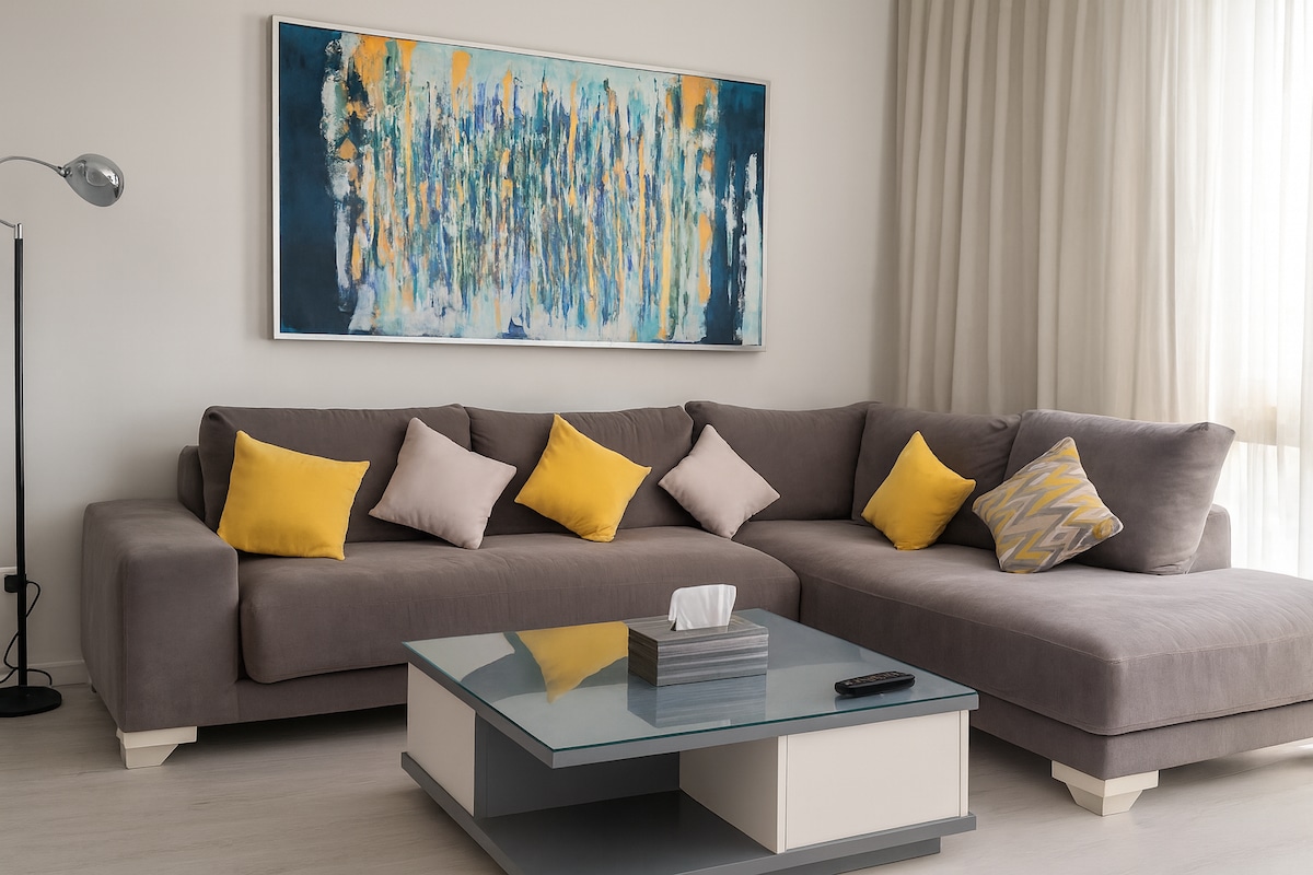 This apartment is the ideal choice for those wishing to live in a quiet and safe area, as all basic services are available in the area surrounding the apartment. This apartment is suitable for all purposes, whether you are looking for a stay for business or leisure. In addition, the building has excellent services such as 24-hour security and maintenance, which makes staying in the apartment safer and more comfortable.