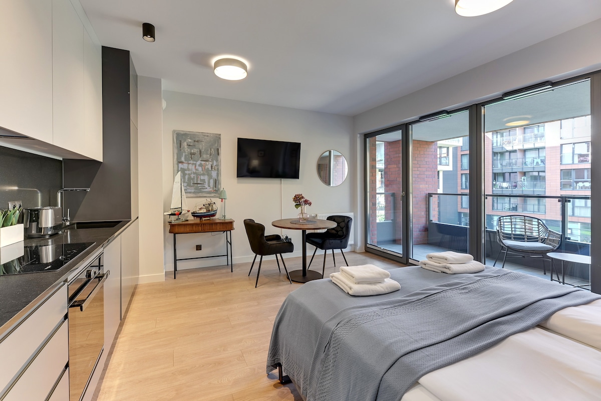 Nowoczesny i przyjemny, niezależny apartament położony w niedawno wybudowanym kompleksie mieszkalnym na historycznej Wyspie Spichrzów. W okolicy znajduje się sklep spożywczy, restauracje oraz kawiarnie. Od fontanny Neptuna dzieli nas zaledwie 10 minut spaceru. Apartament przeznaczony jest dla dwóch osób i jest wyposażony we wszystkie udogodnienia potrzebne zarówno dla par jak i singli.