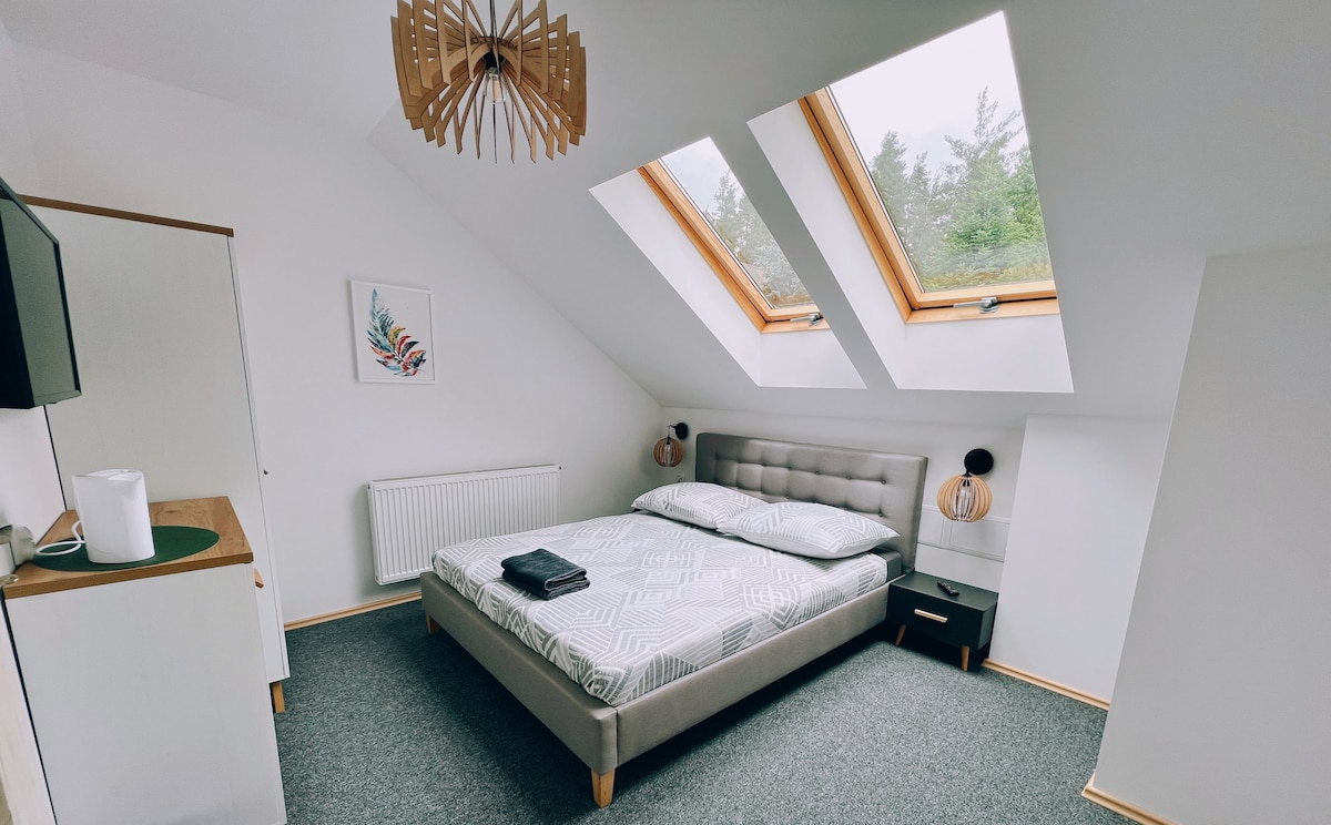 Chabry i Rumianki - Kaszuby - is located in Roztoka and offers free WiFi, free parking Additional costs - Refundable deposit PLN 500 payable in cash - Jacuzzi PLN 100 for 1 day of use (open 24h), common area for two houses - Sauna - PLN 30 per hour of use, common area for two houses - SPA zone - external - Quadrupeds PLN 100 per day. We accept small quadrupeds upon agreement Swimming pool from IV in the case of temperatures above 16 ° C - confirm with the owner