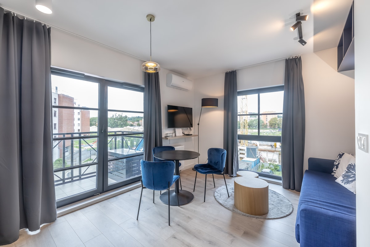Modern 36 m2 studio apartment located near the city center of Gdańsk. Perfect for 2 people. The apartment has a fully equipped kitchen, bathroom with shower, and a comfortable sleeper sofa. Towels and bed linens are provided in the apartment. This property offers a luxury pool, sauna, and fitness gym. Popular points of interest near the apartment include Green Gate, Long Bridge and Neptune Fountain. The nearest airport is Gdańsk Lech Wałęsa Airport, 8.7 miles from the apartment.
