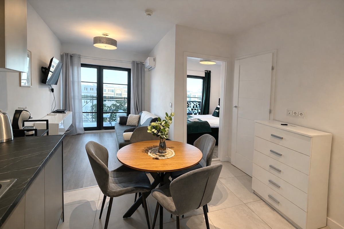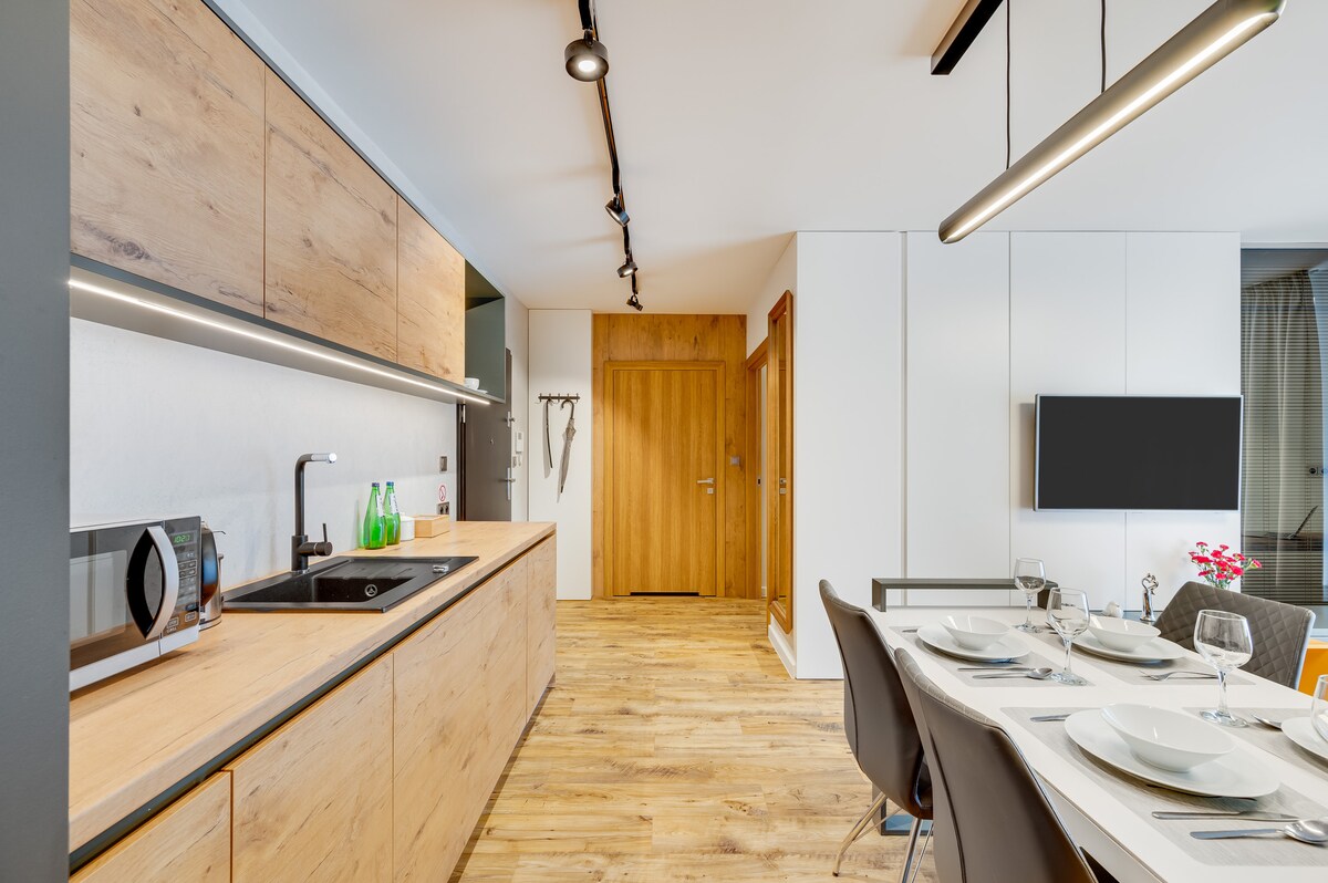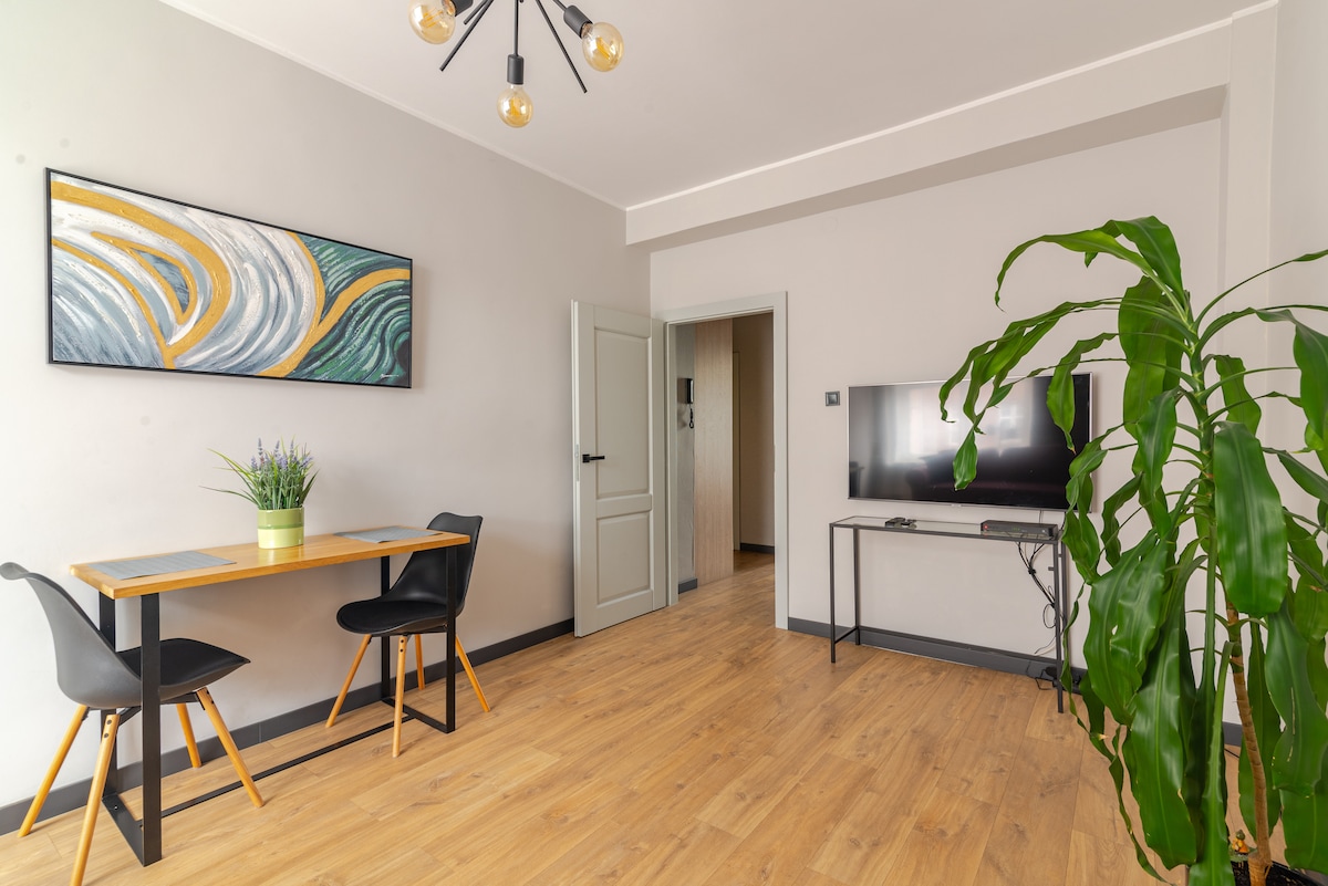 Enjoy a peaceful and stylish stay at this centrally-located place. A newly built, beautifully furnished apartment, perfect for a quiet stay in the heart of Gdańsk. Located on the greenest side of the city center, right next to Góra Gradowa. Although historical and cultural sights, shops, and restaurants are only a 10-15 min walk away, the area feels peaceful and secluded. The place offers a unique, cozy, and very comfortable design, perfect for a couple and a weekend escape.