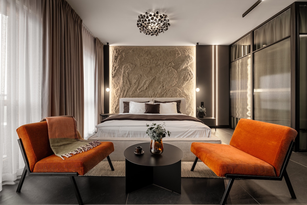 Romantic vibes and a designer freestanding bathtub are the highlights of this modern studio in Gdańsk. It’s the perfect spot for couples seeking both relaxation and style. The space combines a bedroom and living area in a minimalist, functional design. In the heart of Gdańsk, you'll find comfort, calm, and a touch of luxury—ideal for a romantic getaway or city break. On-site amenities include a gym, sauna, and rooftop terrace.