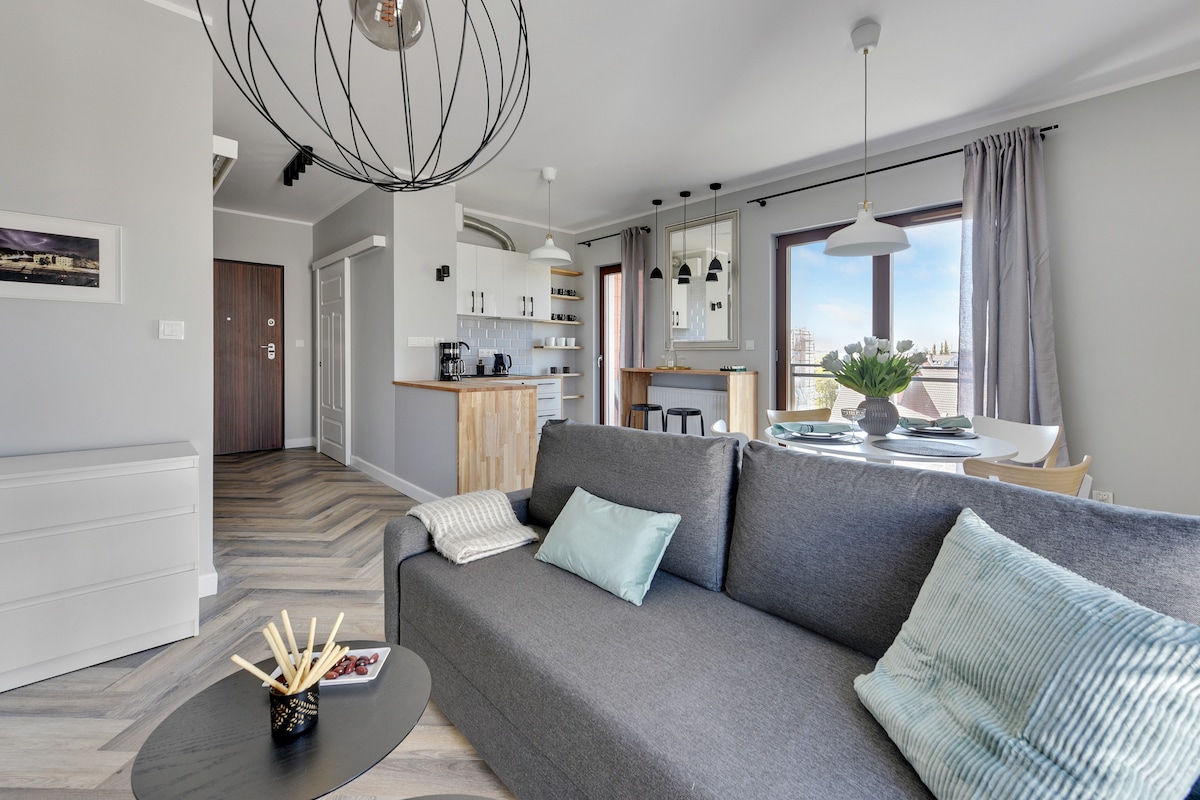 From the moment you step inside, you’ll feel it’s a truly special place. Stylish design, comfort and a warm atmosphere make it perfect for staying in the heart of Gdańsk. A spacious living room and separate bedroom offer convenience, while the Scala complex on Łąkowa Street combines central location with peaceful greenery. Ideal for friends or families.