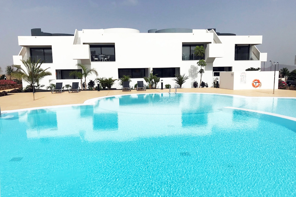 An oasis of tranquility right in the centre of Corralejo! This lovely and well decorated 2 bedroom apartment is ideally situated. From the spacious terrace you can enjoy the view of the massive pool, the lush garden and the sea! The apartment is situated 100 meters from the nearest beach. Right opposite the apartment you will find a tapas bar and restaurants. Just 50 metres around the block, there are shops, supermarkets and a private health clinic. No car required.