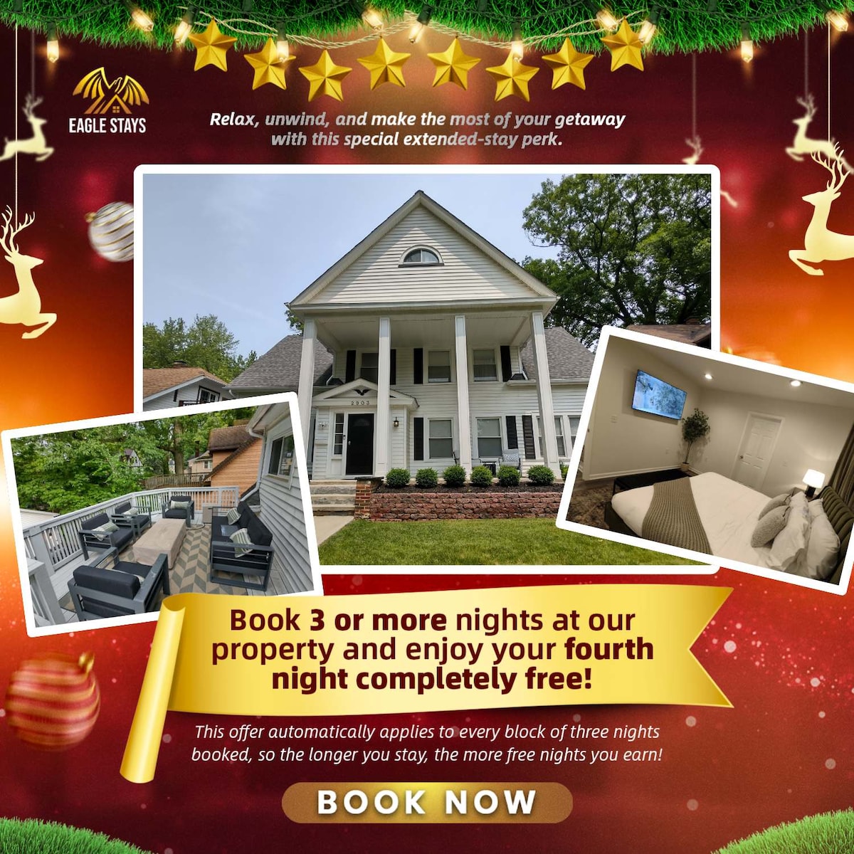 Step into luxury at Washington Oasis, a stunning 5-bedroom, 3-bathroom Colonial in Cleveland Heights. Enjoy high-end interiors, a gourmet kitchen, a game room, multiple fireplaces, and a private backyard. Perfect for families, groups, or anyone seeking elegance with modern comforts. Relax, entertain, or explore nearby attractions. Book now for an unforgettable stay in this prestigious, tree-lined neighborhood.