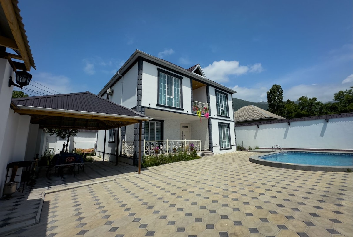 Escape to a private mountain villa in beautiful Gabala — perfect for families and friends. Enjoy fresh forest air, stunning views, a spacious yard and a refreshing pool for summer days. The house offers comfort, serenity and space to relax, grill, enjoy nature, and spend unforgettable evenings together. A peaceful hideaway surrounded by mountains — yet close to city attractions, cable cars and adventure parks.