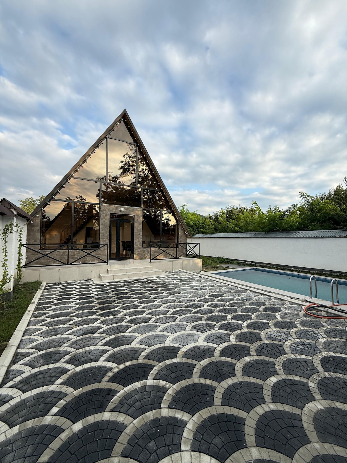 Welcome to our cozy A-Frame cabin in Gabala! Ideal for families or friends, it sleeps up to 8 guests with 3 bedrooms, a spacious living room, and a sofa bed. The house includes 2 bathrooms (1 inside, 1 in the yard), free Wi-Fi, TV, and central heating. Located behind 777 Tea House on the new hospital road, with beautiful mountain views — a peaceful retreat in nature!