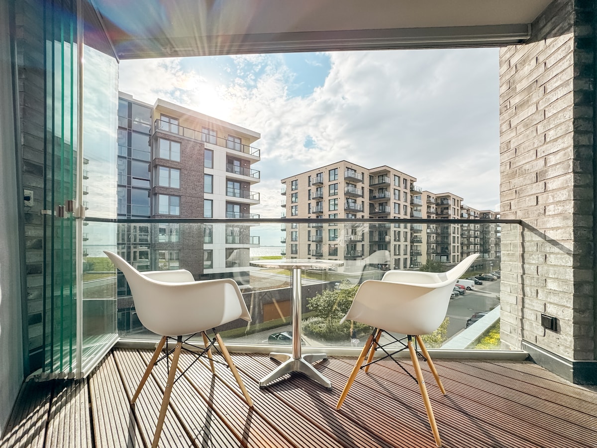 Du wirst hier in einer wunderschönen Zweizimmerwohnung im 9. OG mit umwerfenden Blick auf Weser und Geeste empfangen. Schnelle Wege zur Innenstadt, HBF und Einkaufsmöglichkeiten bieten dir eine ausgezeichnete Lage in Bremerhaven. Touristische Attraktionen wie z.B. Klimahaus, Auswandererhaus & Fischereihafen können schnell zu Fuß oder bei Schmuddelwetter mit dem Bus erreicht werden. Wir freuen uns auf euren Besuch in der wunderschönen Seestadt BHV! Kristina & Marvin