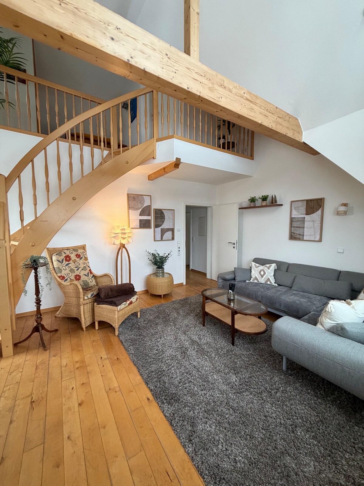 Helle, große, wunderschöne Ferienwohnung auf dem Weingut, 'hyggelig' und modern eingerichtet. Viel Holz schafft eine warme Wohlfühlatmosphäre. Mit 110 Quadratmetern auf zwei Stockwerken, verbunden durch eine schöne Holztreppe, eine offene Wohnküche und zwei Bäder ein herrlicher Platz, um zur Ruhe zu kommen. Frühstück auf dem Balkon, optional eine Weinbergswanderung mit Christoph, der selbst Winzermeister ist, abends Grillen im Garten,danach ein Sundowner vom Weingut - schreibt man so "Paradies"?