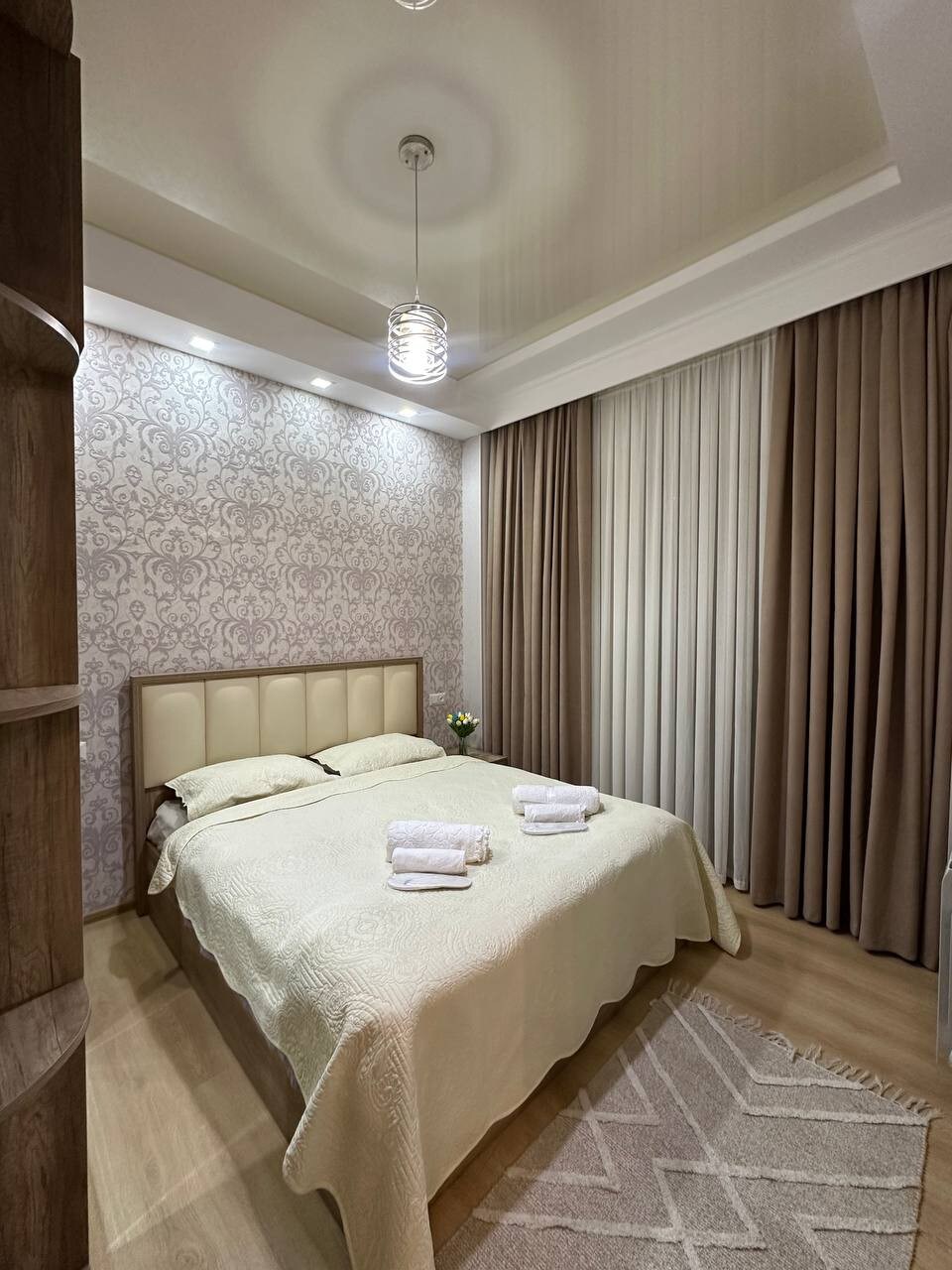 Our brand new apartment is located in a cosy environment at 4 Korkia Street (entrance from Tamar the Quees Street) in the very center of Kutaisi city. There are 2 bedrooms, 2 bathrooms, spacy living room with TV, kitchen, air-conditioning, heating and all necessary things that the guests might need. Our guests will feel a very comfortable atmosphere in our apartment which is located within a few minutes walking area from the main square, markets, restaurants, bars and bus stops.