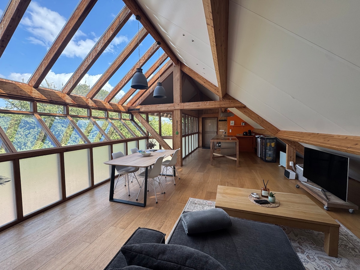 Ontspan en kom tot rust in deze knusse, charmante ruimte. Vanuit ons tuurplekje in de Achterhoek (van ruim 40m2) kijk je uit op de natuur, met zicht op het bos en twee biggen. De hele dag hoor en zie je veel vogels. Je slaapt op een knusse vide, waar je met een stevige trap naartoe kunt komen. Overig: je hebt een eigen ingang, een werk/ schrijfplekje (verstelbaar), een eigen tuintje met terras (incl bbq). Incl boeken en spellen. Luister muziek, via bluetooth of LP speler en tuur om je heen...