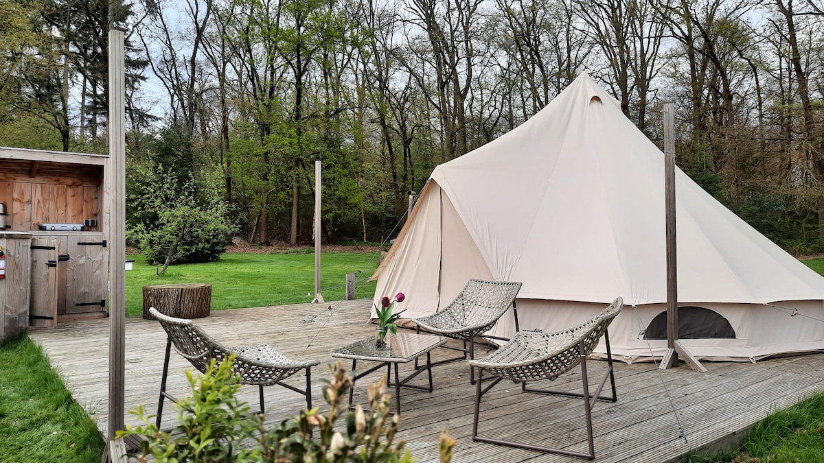 Een prachtige tweepersoonstent gelegen op 'Boerderij Buitengewoon' op landgoed Tongeren. De tent staat op een klein en rustig veldje aan de rand van het bos. Het veldje is onderdeel van 'Boerderij Buitegewoon'; een zorgboerderij met verschillende dieren. We vertellen er graag meer over! Het is een fijne plek om heerlijk te ontspannen en te ontsnappen aan de drukte van alledag. Bij de tent bevindt zich een heerlijke houtgestookte hottub!